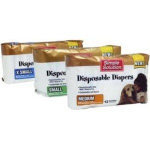 Product Description : Size: X-Large | Color: X-LARGE - Simple Solution Disposable Diapers forSimple Solution Disposable Diapers for DogsDisposable diapers offer no leak protection for a secure, comfortable fit. Each diaper absorbs wetness and eliminates messes from excitable urination, incontinence, females in season, male marking or for puppies that are not yet housetrained. Features an adjusting elastic tail hole, re-sealable closures and a comfort leg fit. Repositionable tabs won't stick to fur.Sample breeds:X-Small: Young Puppies, Toy Breeds.Small: Pekingese, Maltese.Medium: Beagle, Mini Poodle.Large: Basset Hound, Bull Terrier.X-Large: German Shepherd, Dalmation..